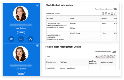 Target is designing the future of HQ work to be hybrid, blending onsite and virtual work to give team members flexibility in how they collaborate. Individuals will work with their leaders to personalise a plan based on their role, team and preferences. To simplify the administrative processes and help track preferences, Target built a Remote Work Arrangement app with Extend. Automating requests, approvals and reporting saves time and improves office-space planning. Additionally, the app syncs with Workday Human Capital Management and Workday Payroll to ensure that team member’s state taxes are based on their home addresses rather than their office locations.